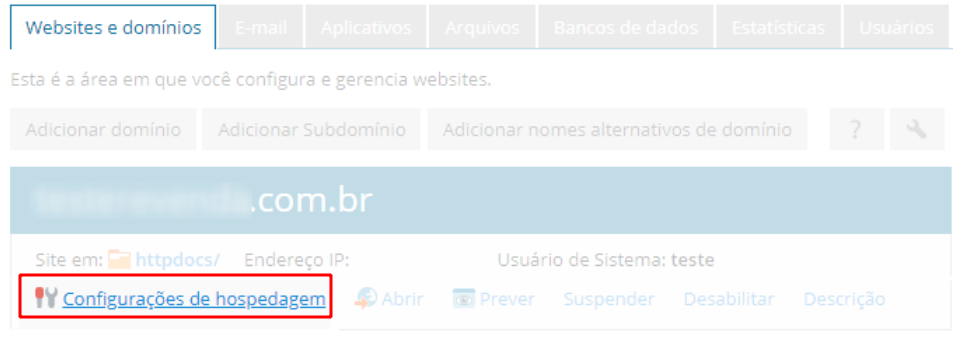 - Em seguinda clique Websites e domínios logo em seguida clique em Configurações de hospedagem.