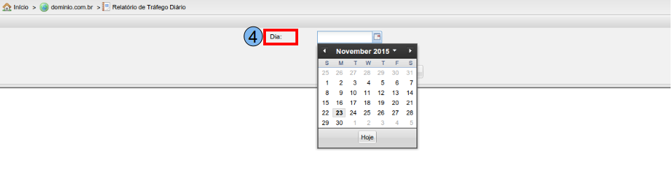 Na opção “Dia” (4), selecione um dia específico para filtrar e visualizar o tráfego diário.