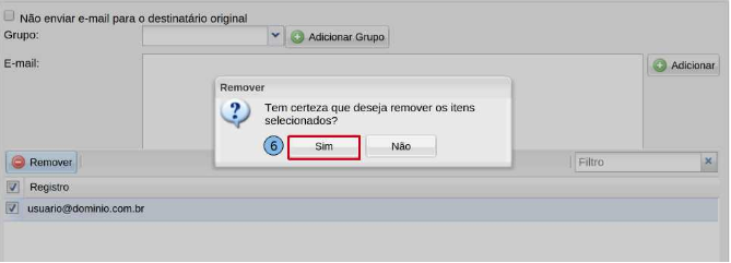Confirme a solicitação para a remoção do redirecionamento clicando na opção “Sim”(6).